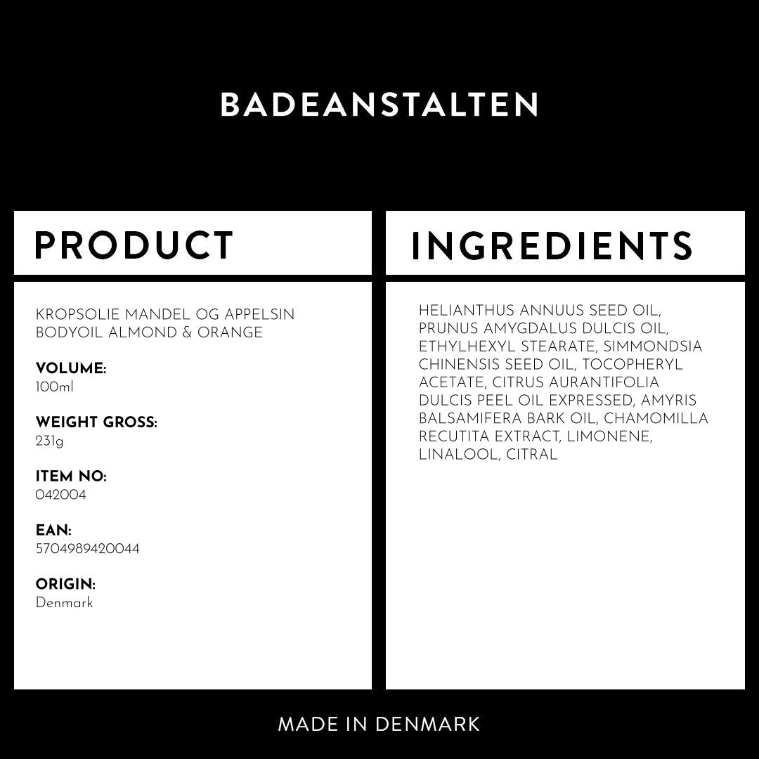 Badeanstalten's body oil is made from 100% natural raw materials in the form of plant oils, plant extracts and essential oils, so that you can take good care of your skin with a clean conscience.